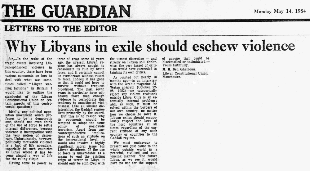 Why Libyans in Exile Should Eschew Violence?
