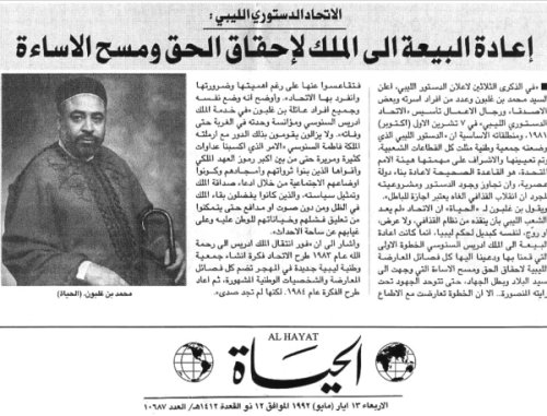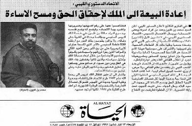 AL-Hayat Arabic daily Newspaper (London) 13 May 1992 "Renewal of the Pledge of Allegiance to the King;to Correct a Wrong and Undo an Insult"