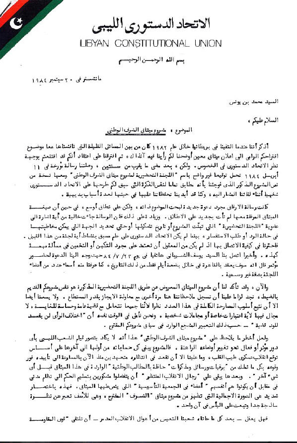 الإتحاد الدستوري الليبي، وهذا ما يجعله ـ فى هذا الإطار ـ أحد