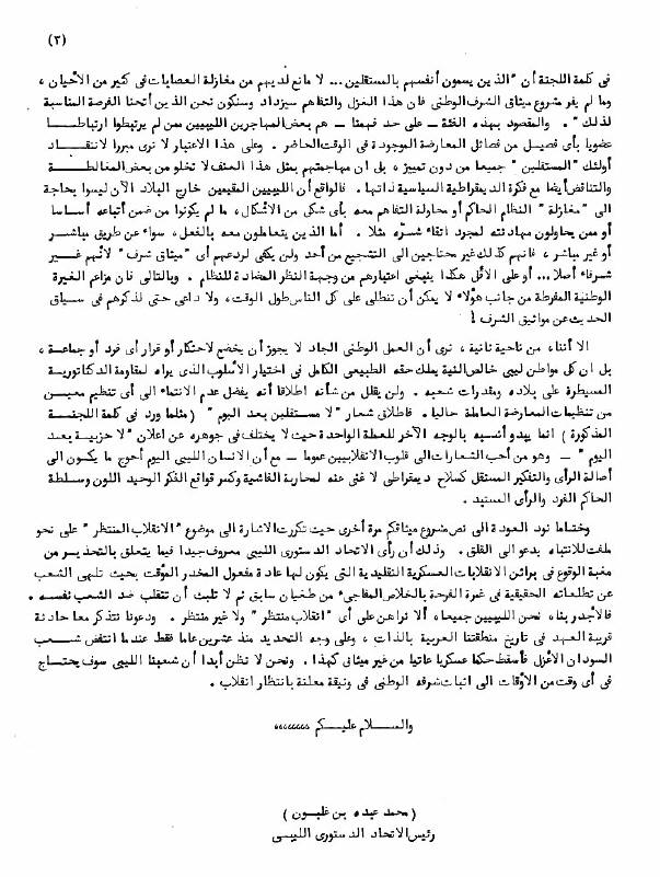 المعارضة الليبية. وفيم يلي ترجمة للجزء الذى يتعلق بموقف بن حليم